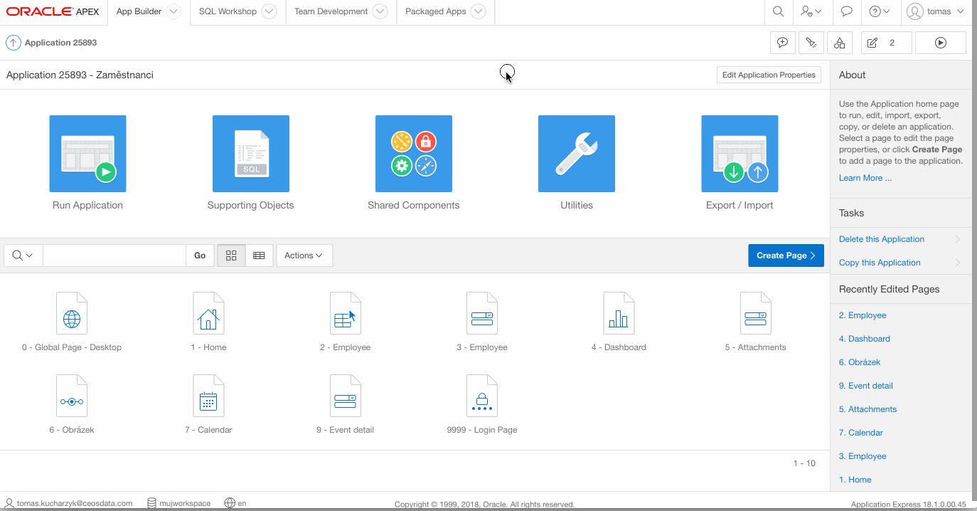Tentokrát ukážu funkce jak dostat data z APEXu. Dříve jsem vytvořil nějaké tabulky a tak ukážu jak z nich provést export. A případně vytisknout reporty rovnou z APEXu.